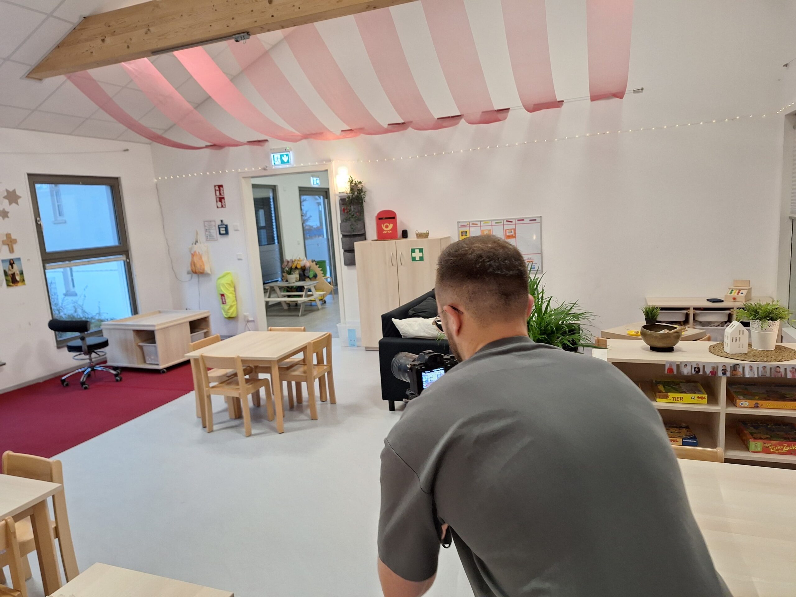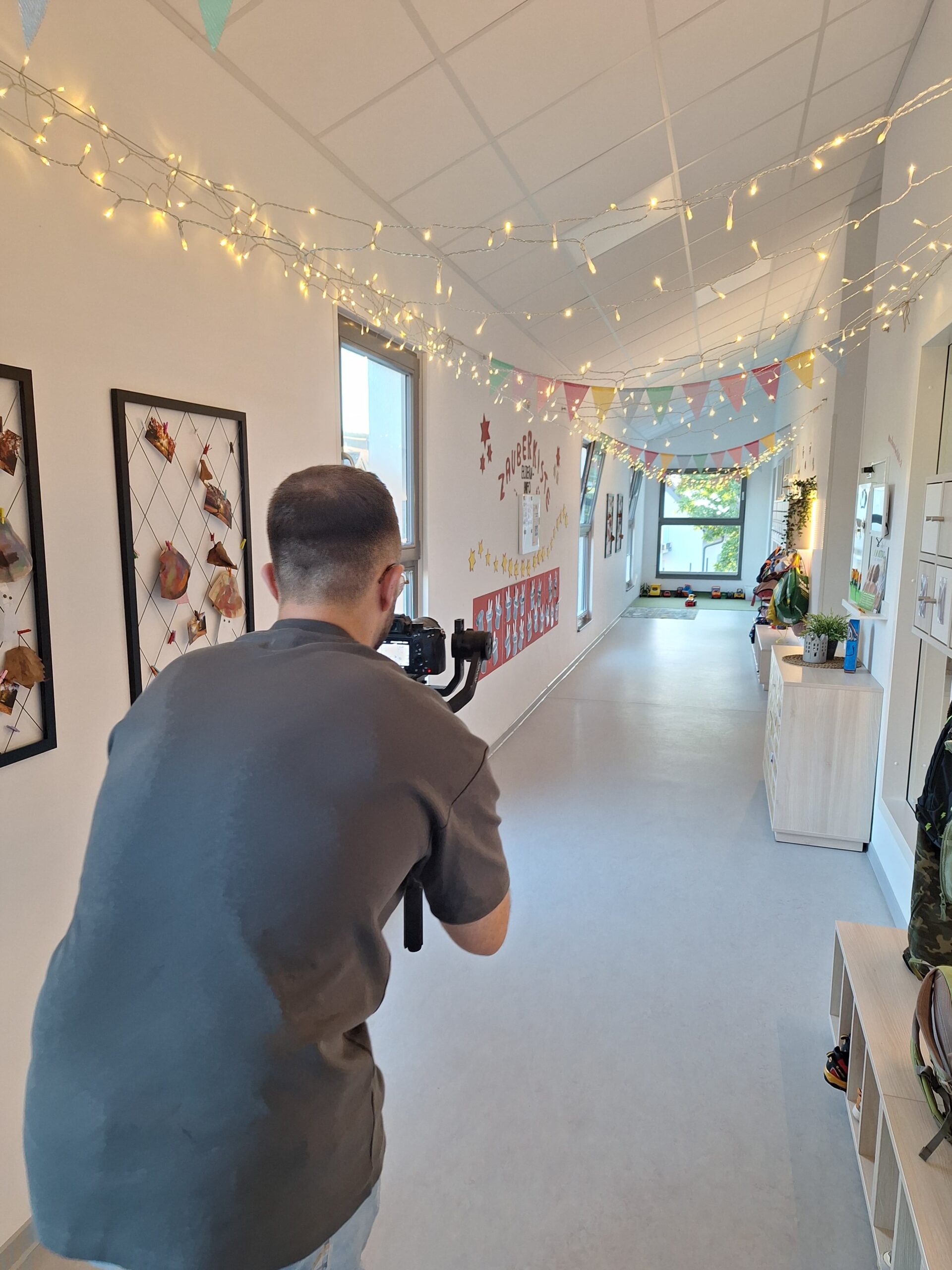 Ein bis maximal zwei Personen unseres Teams kommen an einem Wochenende (außerhalb der regulären Betreuungszeiten) für etwa ein bis drei Stunden in die Kita. Ein Ansprechpartner seitens der Kita muss vor Ort sein. Mit möglichst minimalem Aufwand und einem geschulten Blick filmen wir alle wichtigen Bereiche und sammeln authentische Eindrücke.